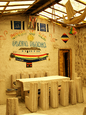 In the afternoon you will cross the salt flat again for one hour and you will arrive back in Uyuni where the tour will end round about five.