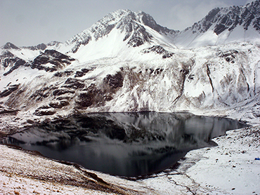It is located directly next to the Tuni Lake, which is used as water reservoir for La Paz. From here you start the trekking with help of mules or donkeys through a scenic valley towards high camp. The trek takes about 3 hours and is not so demanding; the terrain is more or less flat. At Lake Khiar Khota you make camp, excitingly near to the numerous icy giants of the Condoriri mountain range.