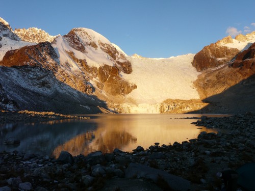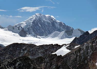The Illampu, the God of the Storm, lies east of Lake Titicaca and north of La Paz. With 6,368 m it is the fourth highest mountain of Bolivia and the third highest of the Cordillera Real. It has two summits: Illampu North and Illampu South, which are connected by an ice ridge. It is the most difficult mountain to climb in Bolivia as it is a giant ice mountain and it can only be climbed by experienced mountaineers.